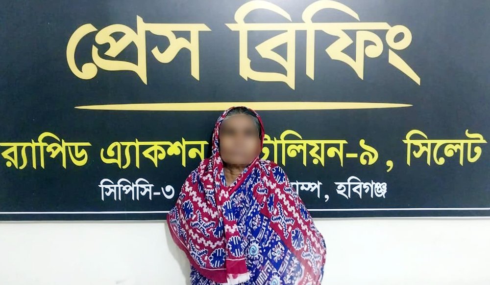 গ্রেপ্তারকৃতের নাম- মোছা. মুনজরা খাতুন (৬০)। তিনি ব্রাহ্মণবাড়িয়া জেলার আখাউড়া থানার আজমপুর গ্রামের মোঃ আমির হোসেনের স্ত্রী।