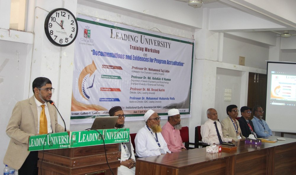 লিডিং ইউনিভার্সিটির ইনস্টিটিউশনাল কোয়ালিটি অ্যাসিউরেন্স সেলের পরিচালক এবং কলা ও আধুনিক ভাষা অনুষদের ডিন প্রফেসর ড. মো. রেজাউল করিমের সভাপতিত্বে প্রশিক্ষণ কর্মশালায় রিসোর্স পারসন হিসেবে উপস্থিত ছিলেন শাহজালাল বিজ্ঞান ও প্রযুক্তি বিশ্ববিদ্যালয়ের জেনেটিক ইঞ্জিনিয়ারিং এন্ড বায়োটেকনোলজি বিভাগের প্রফেসর ড. মো. আব্দুল্লাহ আল মামুন। এসময় তিনি বিশ্ববিদ্যালয়ের প্রত্েযকটি প্রোগ্রামের অ্যাক্রেডিটেশন থাকা গুরুত্বপূর্ণ উল্লেখ করে প্রোগ্রাম অ্যাক্রিডিটেশনের বিষয়ে বিস্তারিতভাবে আলোকপাত করেন।