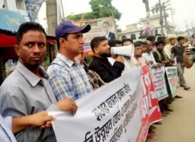 ফসল রক্ষা বাঁধ নির্মাণে অনিয়মের প্রতিবাদে গণসমাবেশ