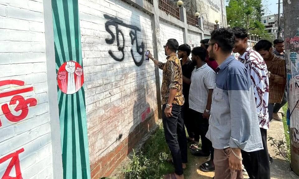 মৌলভীবাজারে দেয়াল লিখনে ছাত্রদলের ব্যাকরণ বিসর্জন